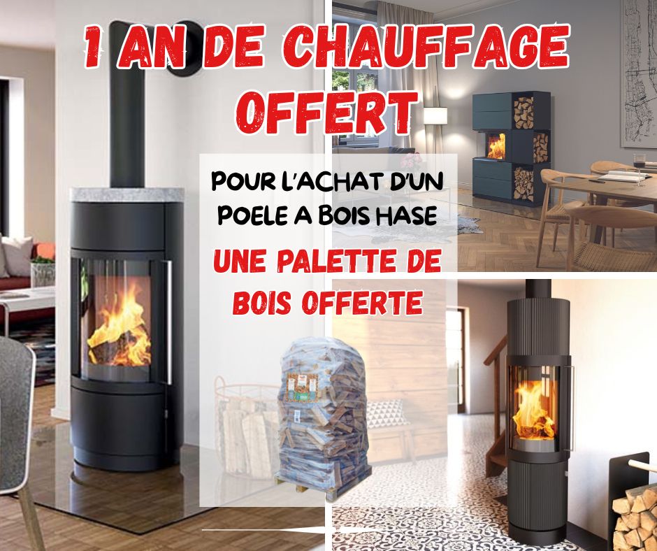 Chez Carré Dauphin, revendeur officiel HASE, nous vous proposons une offre qui réchauffe le cœur (et la maison !) : pour tout achat d’un poêle à bois HASE avant le 31 décembre 2025, une palette de 2,6 stères de bois* vous est offerte.